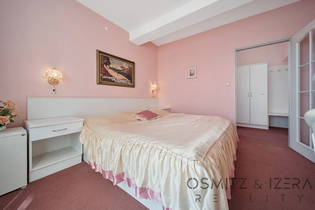 • Nadzemní podlaží: 12 pokojů + 1 apartmán, každý s vlastním sociálním zařízením, 5 pokojů s balkónem.