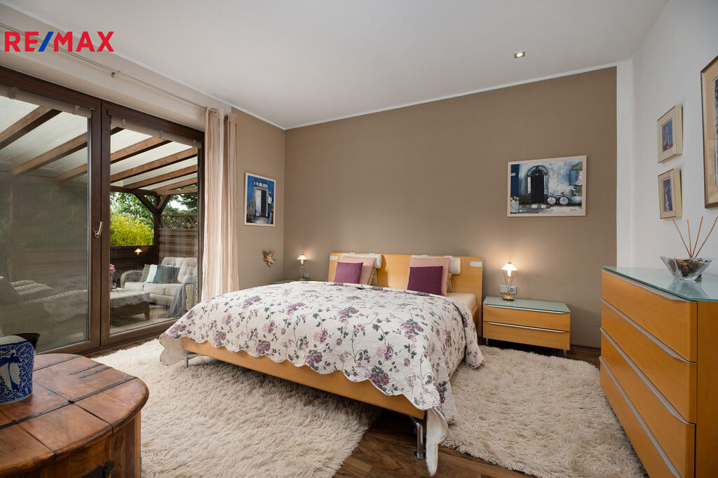 • v jedné se nachází ložnice, koupelna, šatna a malá pracovna,