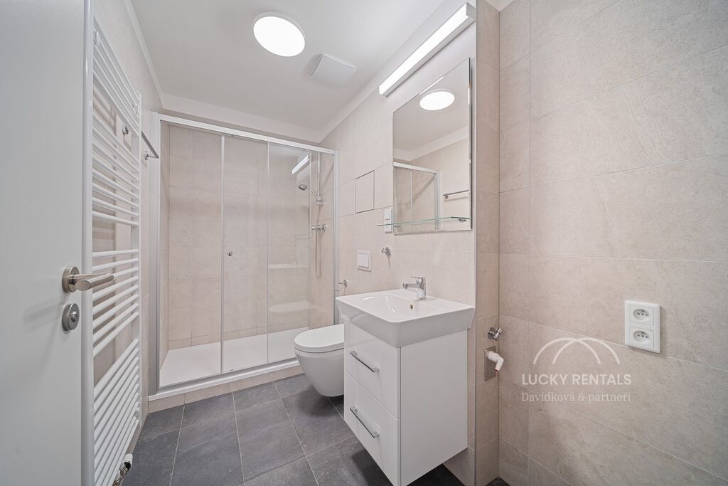 Byt se pronajímá nezařízený, ve vysokém standardu, vybavený o novou kuchyňskou linku značky Oresi s vestavěnými spotřebiči na míru (myčka na nádobí, lednice, varná deska, trouba, digestoř). Bezpečnostní vstupní dveře značky Sapeli, vinylové podlahy, dlažba, kvalitní sanita v koupelně. K bytu náleží sklep.