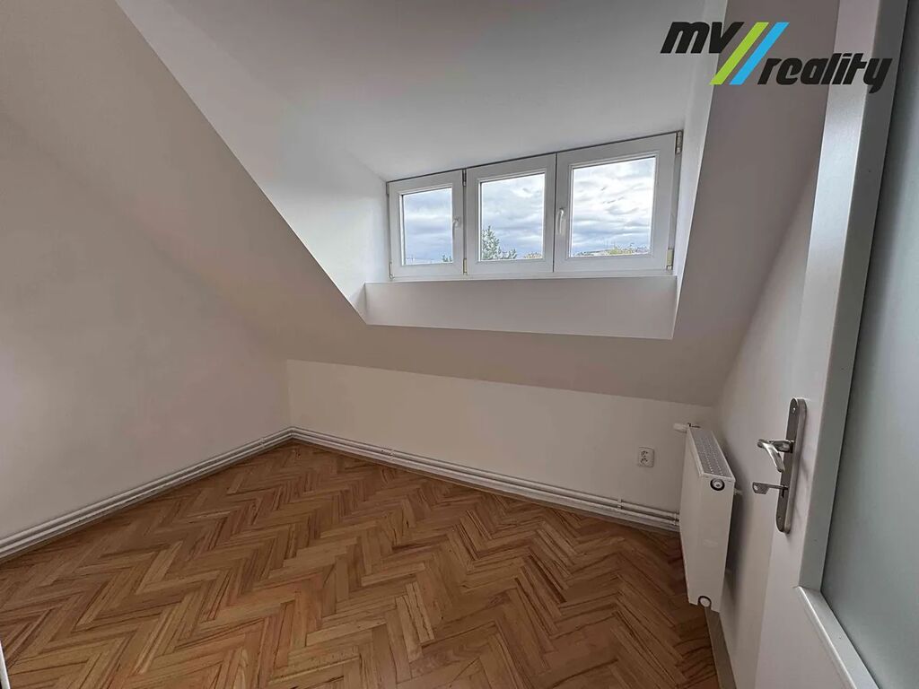Obytný pokoj je prostorná a světlá místnost, které dominují nádherné zrenovované dřevěné parkety. Součástí je nová kuchyňská linka v bílém designu s tmavou pracovní deskou. Velké okno zajišťuje dostatek světla a nabízí příjemný výhled na okolní zástavbu a zeleň.