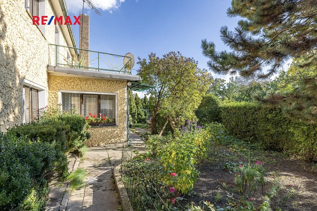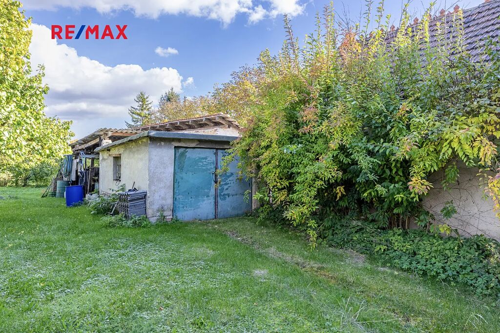 Součástí je také garáž o ploše cca 20 m², menší sklep a zahrada se vzrostlými stromy.