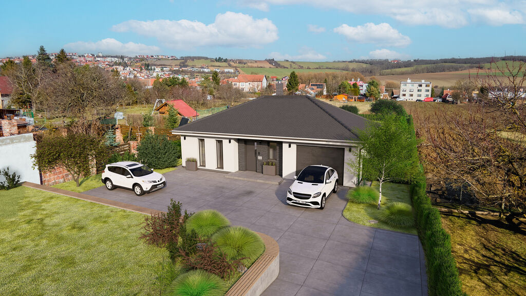 Součástí této nabídky je také projekt na stavbu dvoupatrového dvojdomu, každý 5+1 s užitnou podlahovou plochou 129 m², ideální zahradou, venkovním parkovacím stáním i garáží. K pozemkům náleží i společná příjezdová cesta.