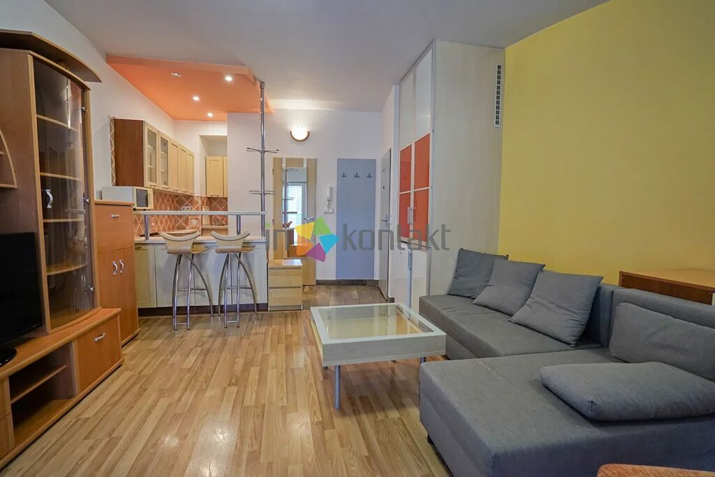 Byt je vybaven vším potřebným pro pohodlné bydlení – kuchyňská linka s lednicí a mikrovlnnou troubou, pračka, televize a rozkládací pohovka.