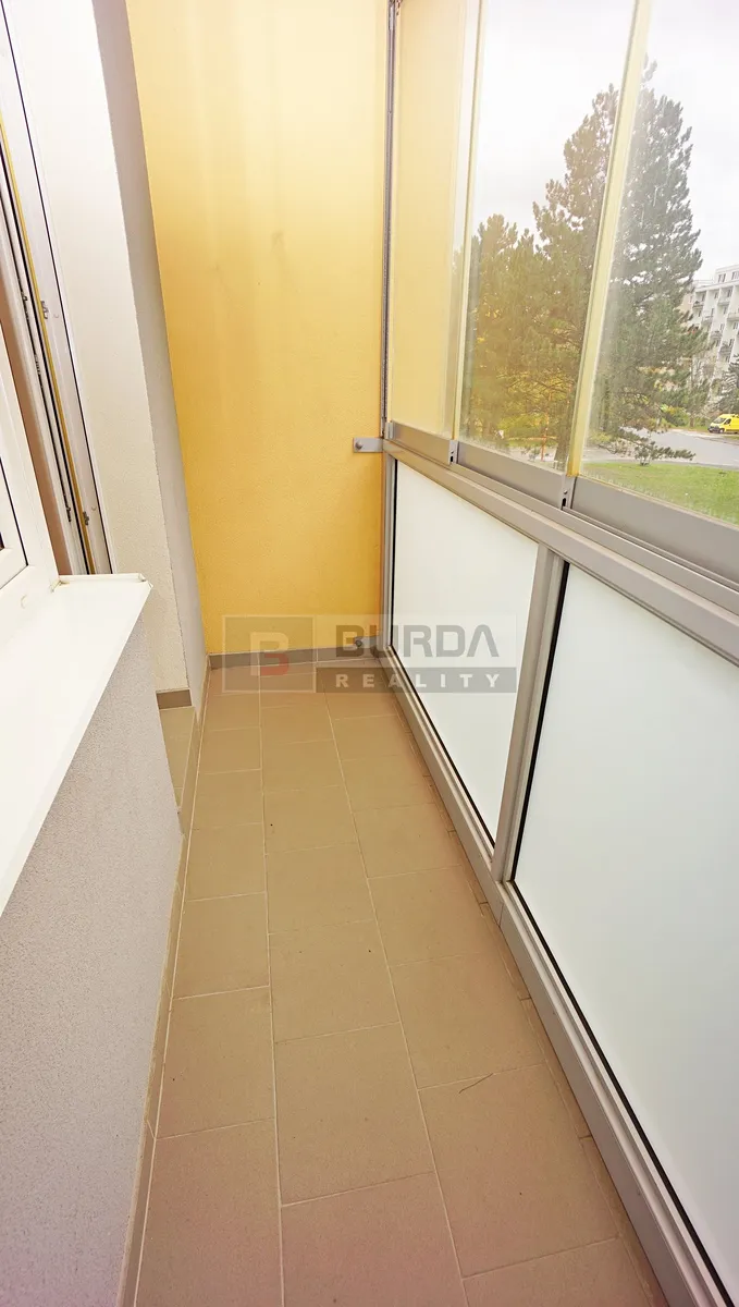 Lodžie u kuchyně není zasklená, jsou zde šňůry na sušení prádla. Ostatní dvě lodžie jsou zasklené.
