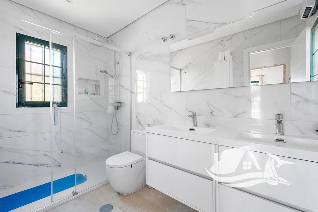 Vila má tři prostorné ložnice a dvě plně vybavené koupelny, které poskytují dostatek pohodlí pro rodinu i hosty. Samostatná kuchyně je navržena tak, aby nabízela dostatek prostoru i klidu při vaření, a přitom působila svěže a funkčně. Obytný prostor je zařízen s citem a prodává se kompletně vybavený – včetně klimatizace, která zajišťuje příjemnou teplotu po celý rok.
