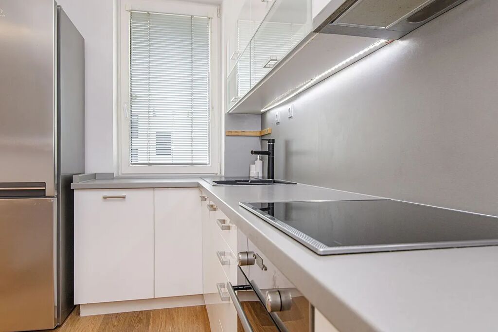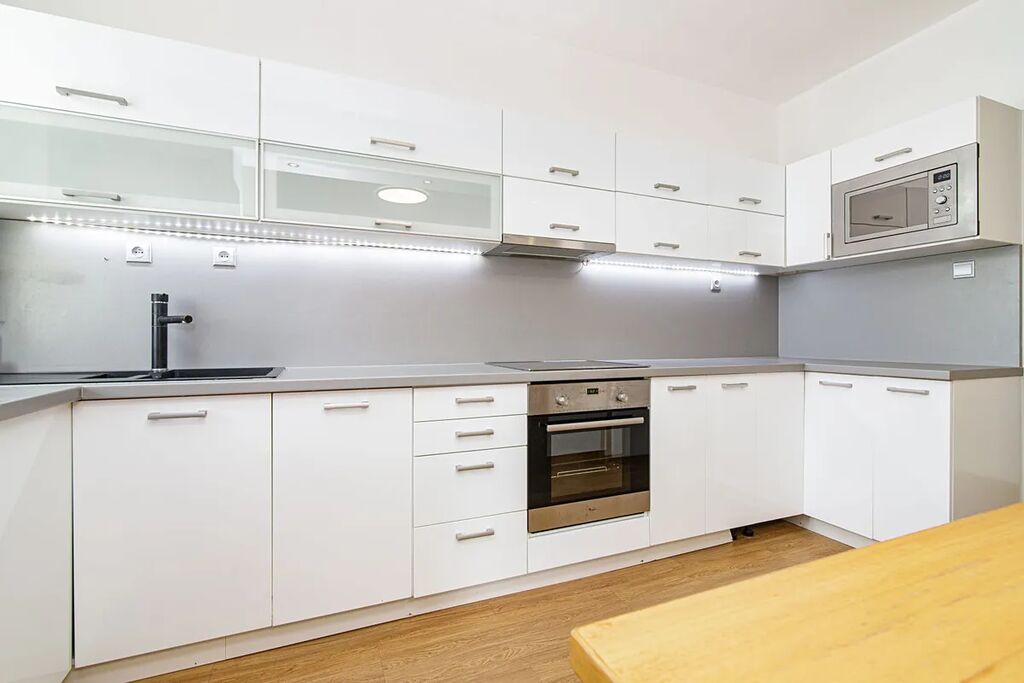 V bytě je k dispozici kuchyňská linka vč. všech vestavných spotřebičů. Na podlaze je kvalitní laminátová podlaha. Vytápění zajištuje moderní plynový kondenzační kotel. Vstupní dveře jsou bezpečností, protipožární.