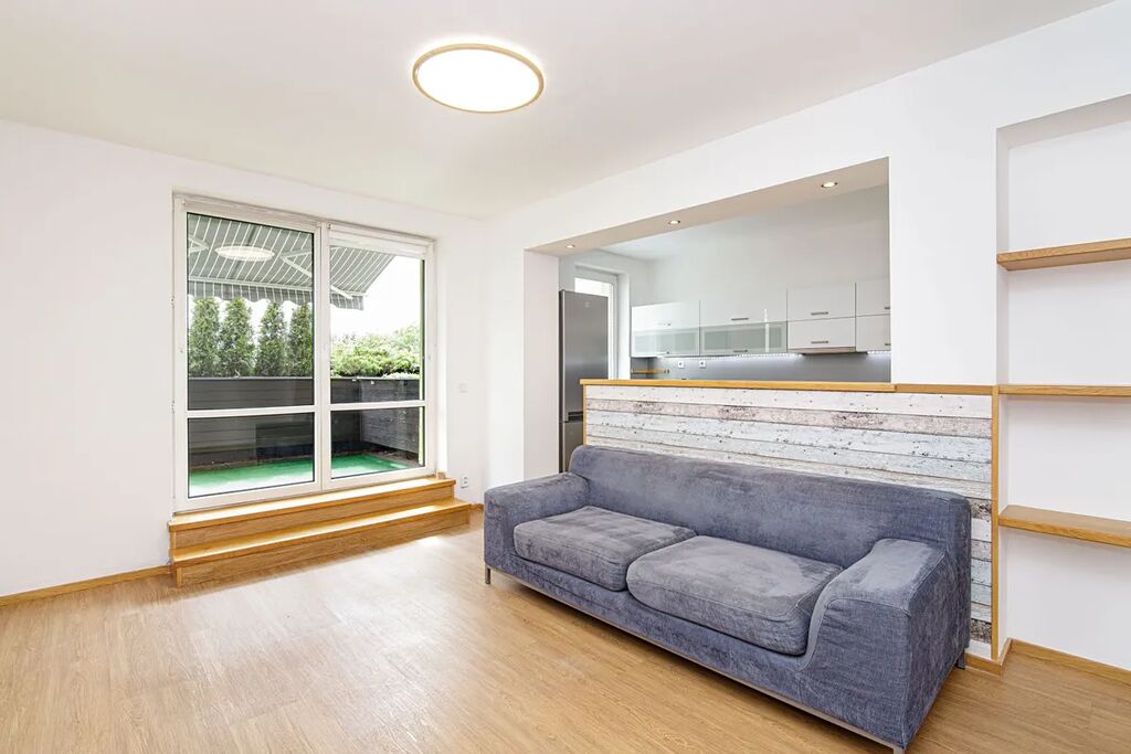 K bytu náleží vnitřní garáž s dálkově ovládanými vraty a prostorná terasa s markýzou.