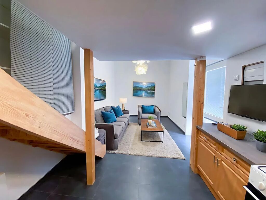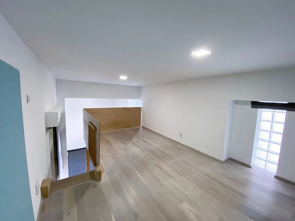 Dispozice a vybavení: Vstup do bytu je samostatný ze dvora, obývací pokoj s kuchyňským koutem, koupelna s vanou a toaletou dohromady,schody a další pokoj v mezonetu. Světlý a útulný interiér