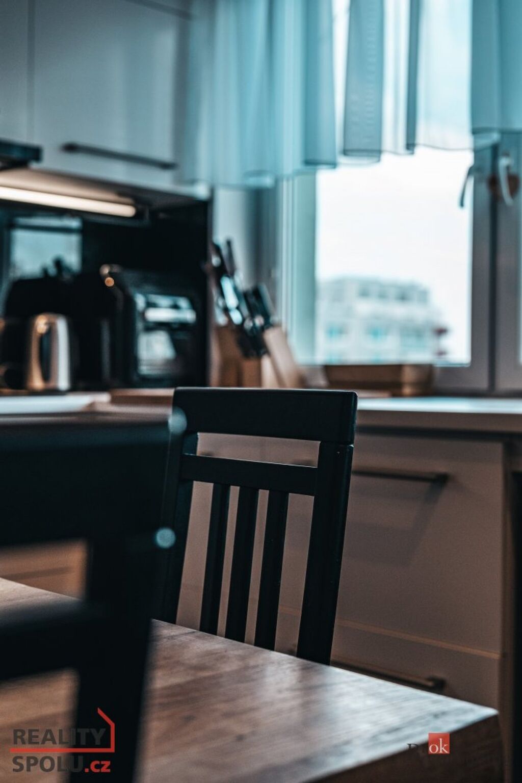 Byt o celkové ploše 92 m² je díky svému dvoupodlažnímu uspořádání výjimečný – nabízí přirozené oddělení společenské a klidové části. Spodní patro tvoří obývací prostor s kuchyňským koutem, v horním pak naleznete dva útulné pokoje sloužící jako ložnice a dětský pokoj. Díky umístění v posledním patře působí byt vzdušně, poskytuje příjemný klid od ruchu okolí a nabízí krásné výhledy.