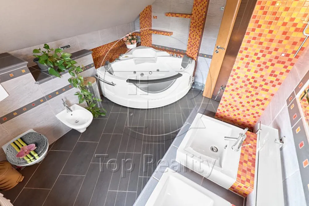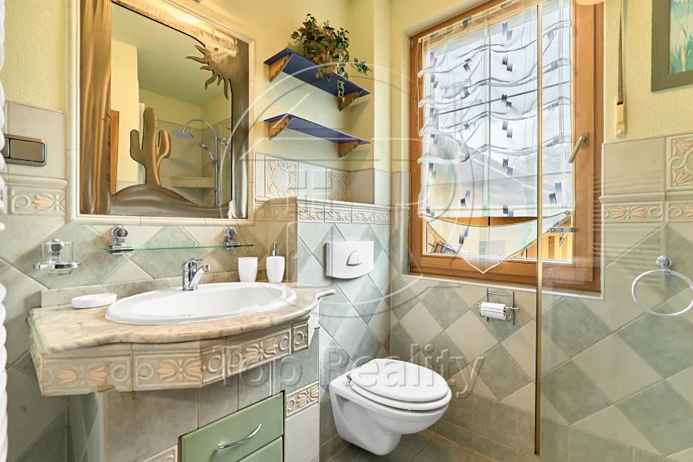 Použité materiály působí útulně a kvalitně dřevěná eurookna z malajského dubu, dlažba v celém přízemí a v koupelně v patře, plovoucí podlahy v pokojích.