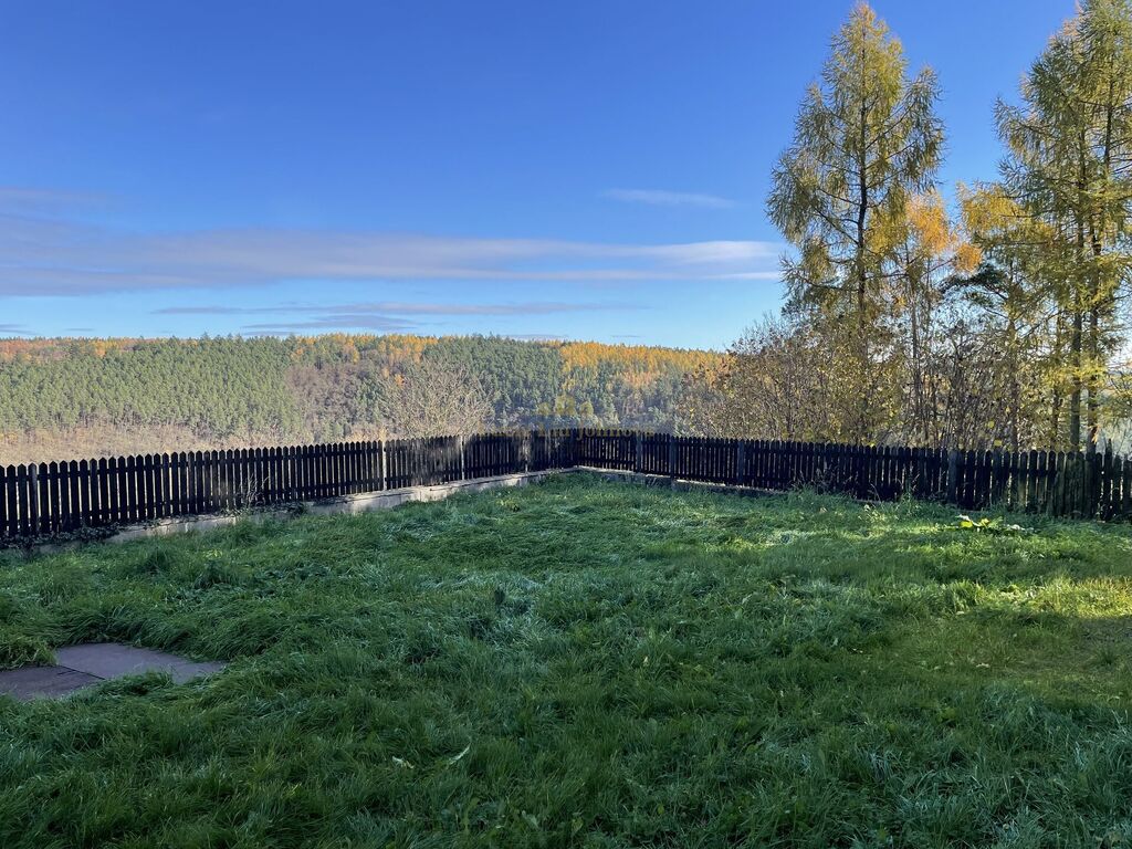 Dům se nachází na rovinatém, zatravněném pozemku s nádherným výhledem do okolní krajiny. Lesy a louky v bezprostřední blízkosti dodávají místu výjimečnou atmosféru a inspirují k aktivnímu odpočinku. Zahradu lze přetvořit dle individuálních potřeb a fantazie.