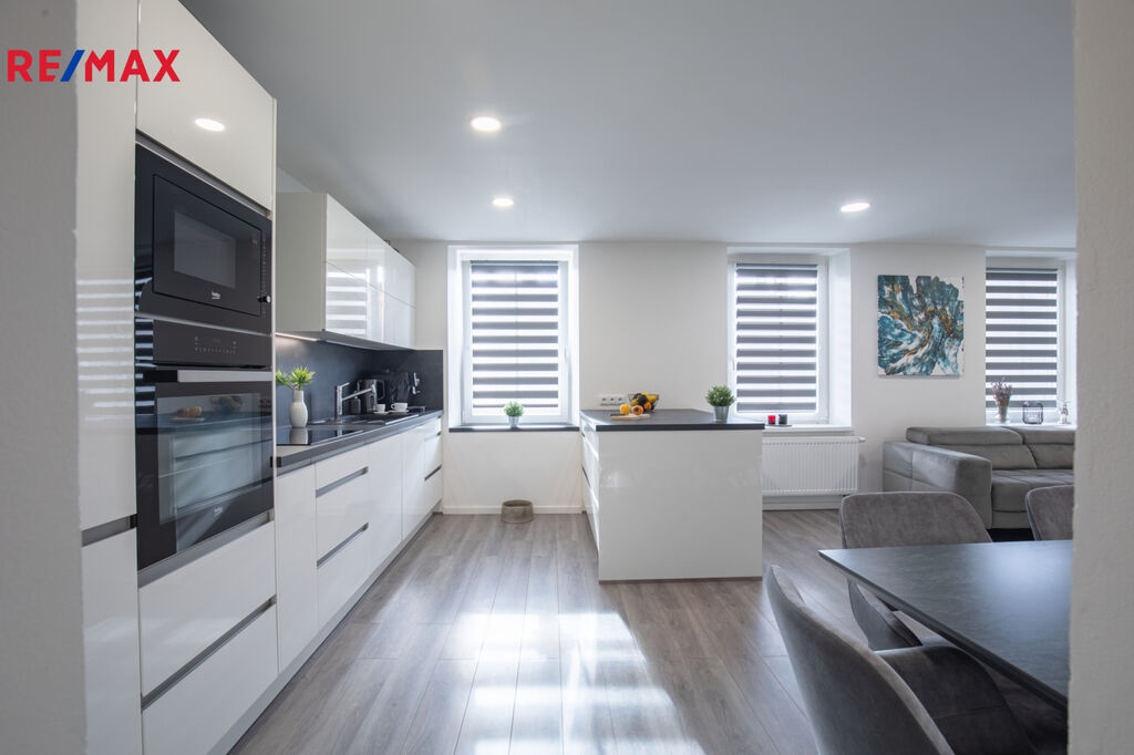 Nabízíme k prodeji nadstandardní byt 3+kk v osobním vlastnictví po kompletní a velmi kvalitní zánovní rekonstrukci. Změna původní dispozice, (zvětšená koupelna, obývací pokoj s kuchyní) , elektřina v mědi, snížené stropy SDK s LED osvětlením, radiátory, štuky, dveře, podlahy, kondenzačn plynový kotel, koupelna, kuchyňská linka s vest.spotřebiči.