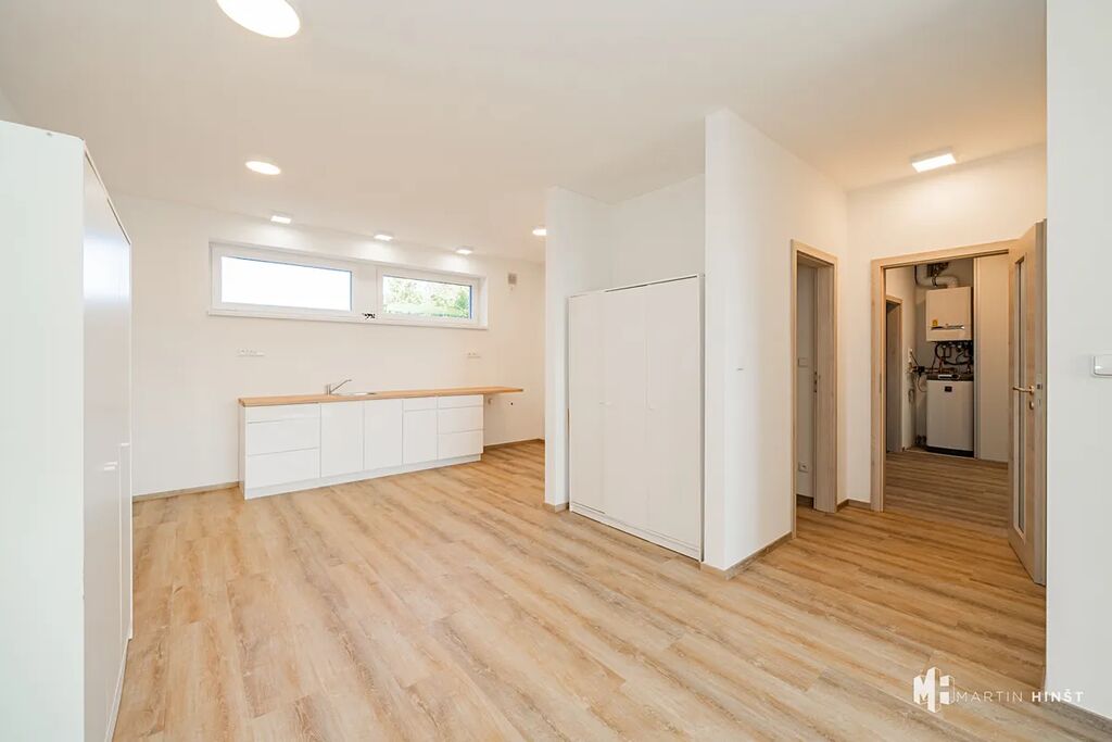 Interiér bytu je nezařízený, což umožňuje budoucímu nájemci zařídit si bydlení podle vlastních představ. Vytápění je zajištěno moderním plynovým kotlem se zásobníkem na vodu, což zajišťuje komfortní a efektivní vytápění.