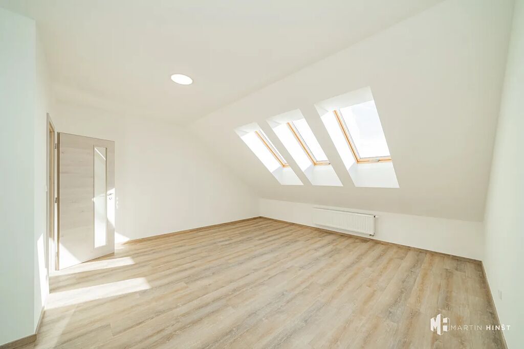 Nabízíme k pronájmu prostorný byt 5+kk o velikosti 154 m² ve Zloníně, ulice Za Humny, umístěný v patrovém cihlovém domě na 2. a 3. podlaží. Byt disponuje dvěma koupelnami, přičemž jedna je vybavena vanou, druhá sprchovým koutem a dvěma toaletami. Byt nabízí klidné bydlení v centru obce, s možností parkování na přilehlém pozemku. Dětská skupina s provozem v přízemí (Po-Pá 8-17h) nepředstavuje pro nájemce žádné rušení, do bytu se prochází společnou chodbou.
