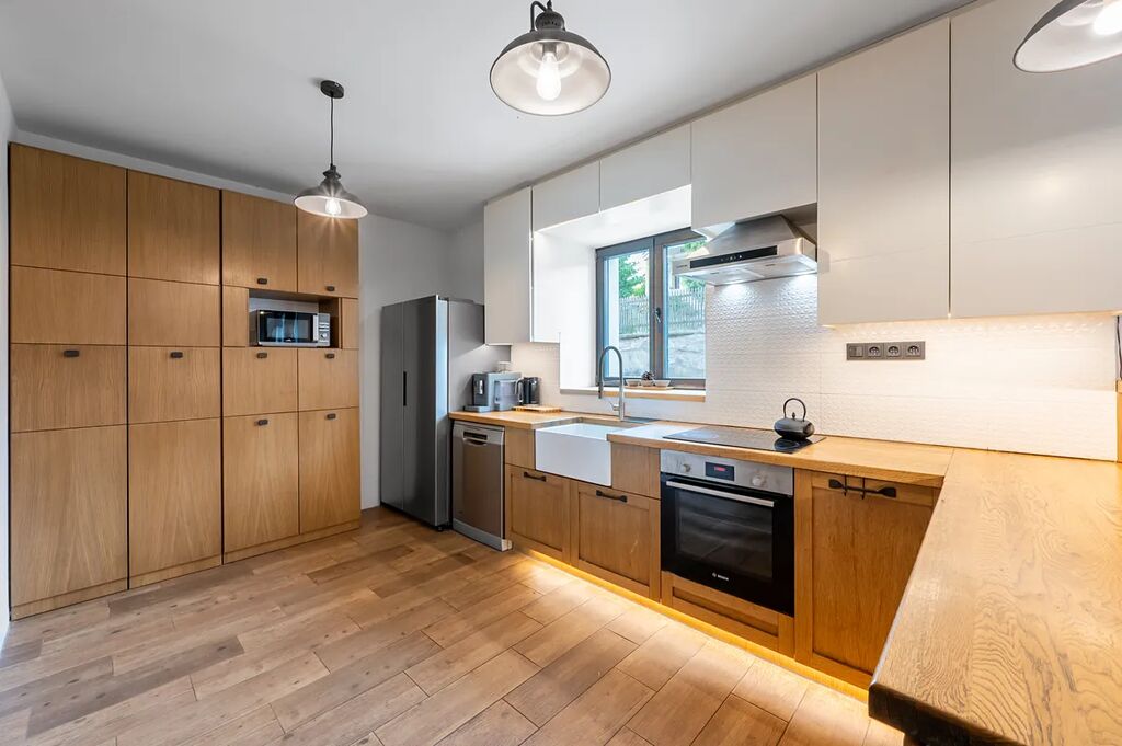 Dům je vybaven novou kuchyňskou linkou s kompletními kuchyňskými spotřebiči. Koupelna a záchod jsou nově osazeny, a luxusně vybaveny.