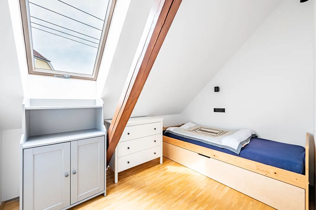 Patro: tři samostatné pokoje. V patře je dále samostatná nová koupelna s vanou, umyvadlem a WC . Do koupelny je možno vstoupit z chodby, nebo z pokoje. V celém domě jsou udělány nové podlahy, dveře a okna. Dále nová fasáda se zateplením 200 mm. Všechny truhlářské prvky jsou dělány na zakázku v nejvyšší kvalitě.
