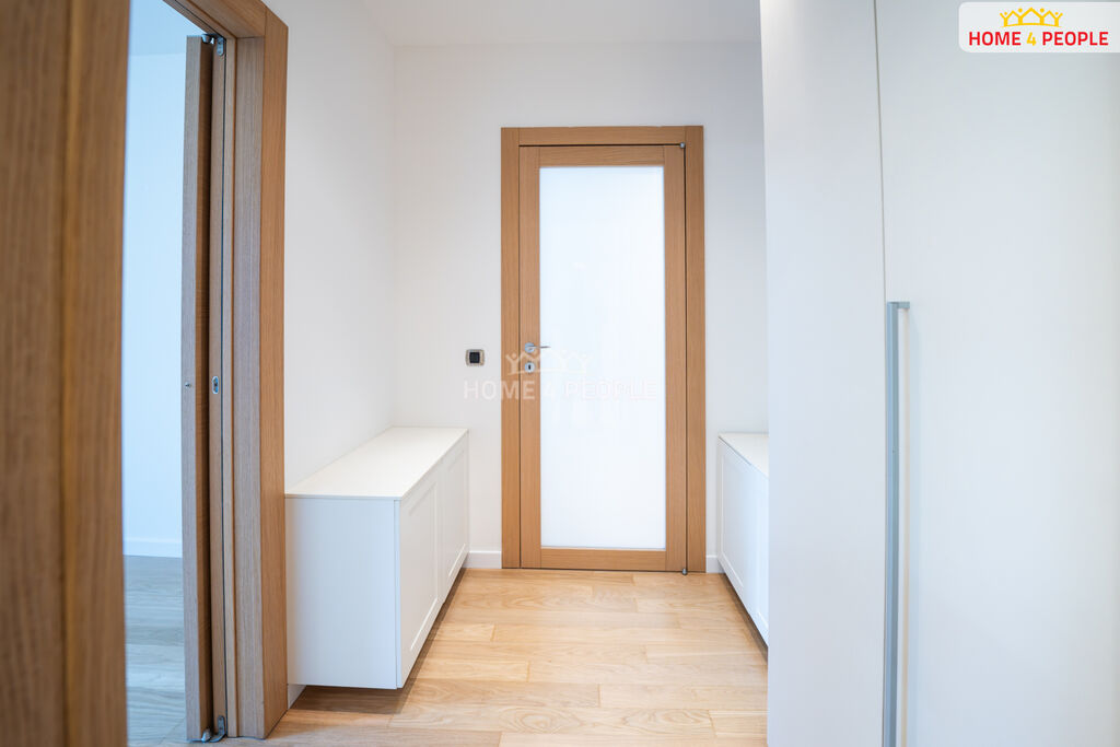 Byt o obytné ploše 62 m² se vyznačuje velkorysým proskleným prostorem, vysokými stropy a nadčasovým designem, díky čemuž působí vzdušně a elegantně.