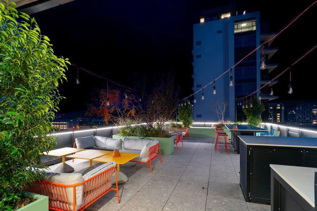 K dispozici je zdarma luxusní spa a wellness centrum, 18metrový bazén a střešní terasa s výhledem na přírodu a možností grilování.