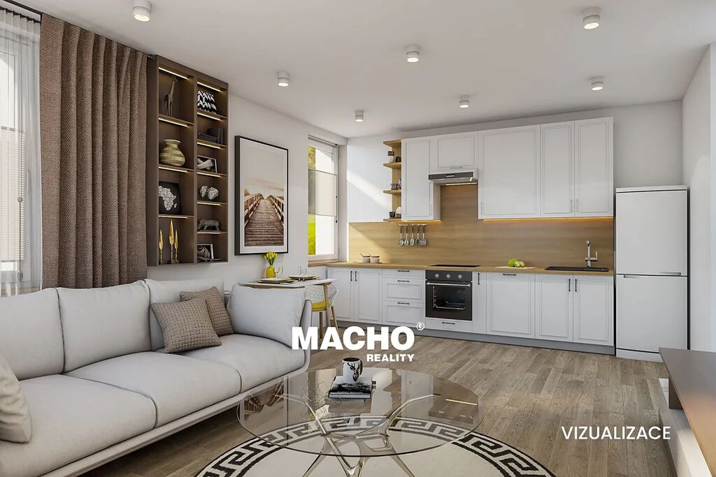 Bytová jednotka je dispozičně řešena jako 2+kk. Za vstupními dveřmi se nachází prostorná předsíň, na kterou navazuje chodba, ze které je přístupný obývací pokoj s kuchyňským koutem, samostatná ložnice a koupelna se sprchovým koutem a toaletou.