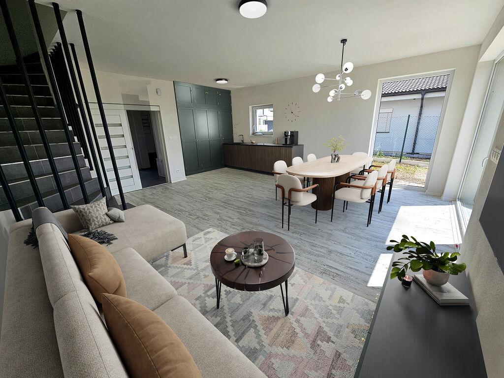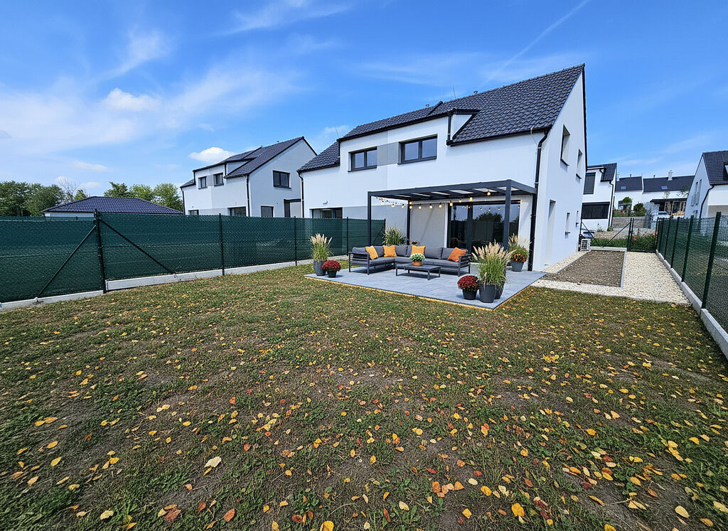 Zahrada určená k výhradnímu užívání obyvateli je cca 105 m². Přízemí s obývacím pokojem a kuchyní spojeno se zahradou francouzským oknem, to je ideální prostor pro společné chvíle s rodinou i přáteli. Nachází se zde rovněž koupelna se sprchovým koutem a WC, dále pak prostorné zádveří. Horní patro poskytuje maximální soukromí. Najdeme zde ložnici, dětský pokoj, pracovnu, koupelnu s vanou a WC.