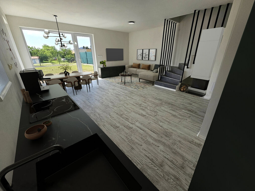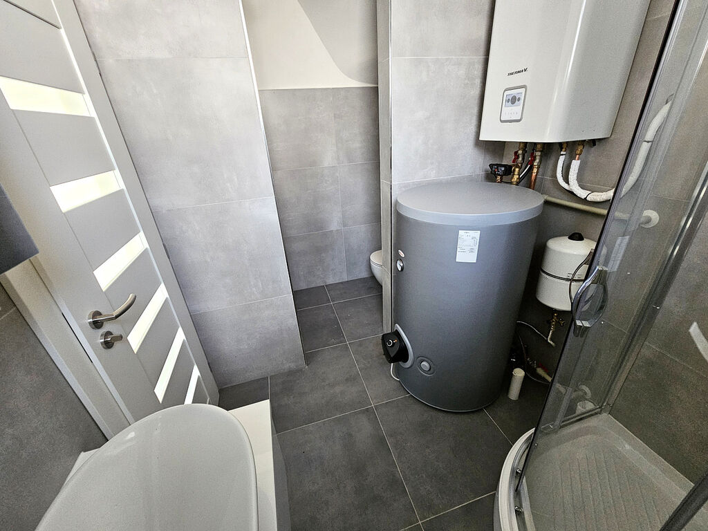Vytápění je řešeno tepelným čerpadlem s podlahovým vytápěním sloužící i pro ohřev vody, lze tedy očekávat nízké provozní náklady. V obývacím pokoji je také příprava na osazení kamen. Vstup na pozemek z uliční části je možný brankou. Dům má retenci pro vsak a sběr dešťové vody, kterou lze využít pro zaléváni zahrady. Součástí dokončovacích prací je zhotovení terasy o velikosti 3x2 m a dle dohody možnost vydláždění předzahrádky kolem parkovacího místa.