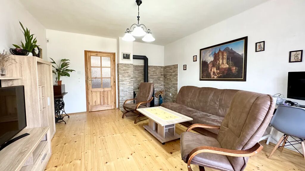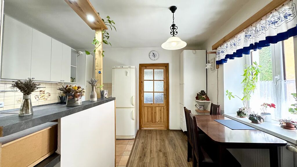 Co nabízí nemovitost? Čeká Vás nejen odpočinek, ale i práce na krásné zahrádce, pokud budete chtít. Vlastník postupně dům citlivě rekonstruoval, v podkrovní části je rekonstrukce dokončena až po omítky. Budova je zděná s malým sklepem na brambory. Hlavní část domu o dispozici 2+1 je vytápěna kotlem Atmos 18 kW na tuhá paliva s rozvodem do ústředního topení. To je rozvedeno i do vedlejší části budovy, kde je v podkroví obytná část 2kk rekonstruována před dokončením. Mimo toto vytápění, jsou v obývacím pokoji krbová kamna s vlastním komínem. Oba dva zdroje vytápění jsou aktuálně po revizi a kontrole spalinových cest před zimou. Podlahy jsou izolovány, v chodbě, komoře, obývacím pokoji a v ložnici je dřevěná prkenná podlaha, v kuchyni, wc a koupelně dlažba. U ložnice najdete druhé wc s umyvadlem. Na obytnou část navazuje technická míst velikosti garáže se širokými dveřmi a směrem do zahrady se dostanete na terasu s venkovní kuchyní a posezením. Zahrada má vzrostlé stromy, udržovaný stav, záhonky i skleník k pěstování.