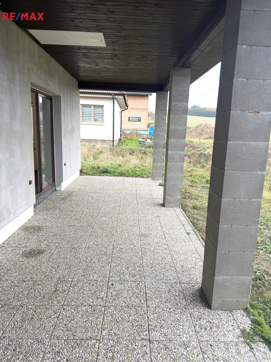 Novostavba je  o zastavěné ploše 187m2 a o celkové ploše pozemku 790m2 a o dispozici 4+KK s garáží, technickou částí, terasou a zahradou.