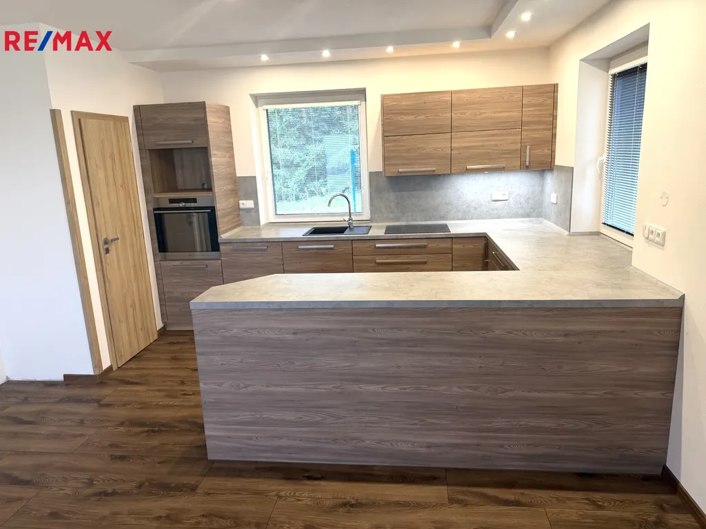 Novostavba je o zastavěné ploše 187m2 a o celkové ploše pozemku 790m2 a o dispozici 4+KK s garáží, technickou částí, terasou a zahradou.
