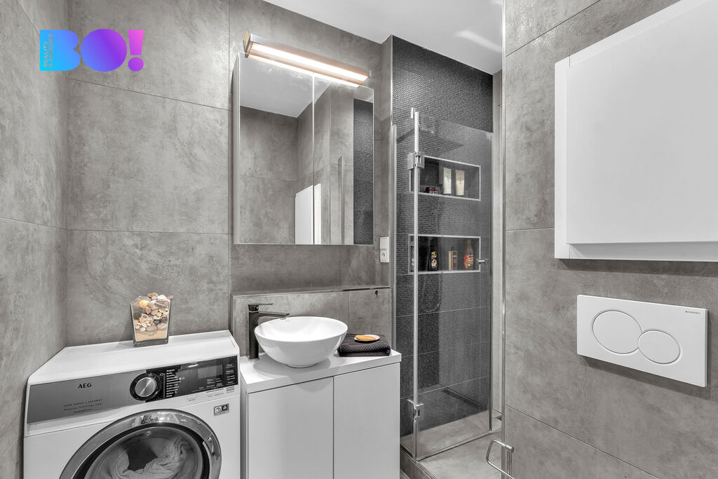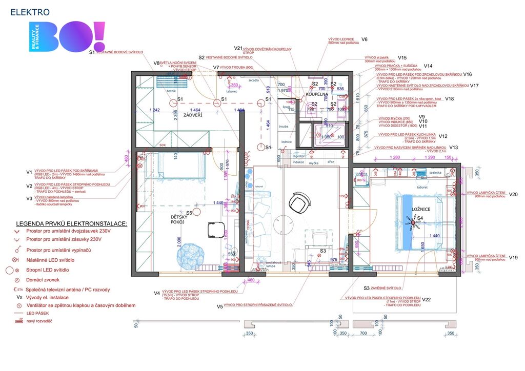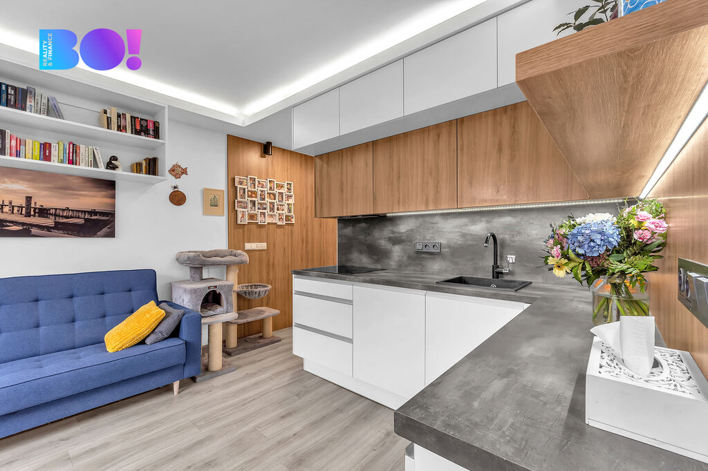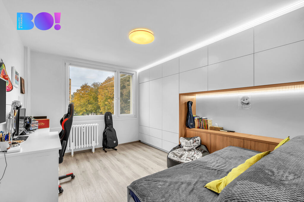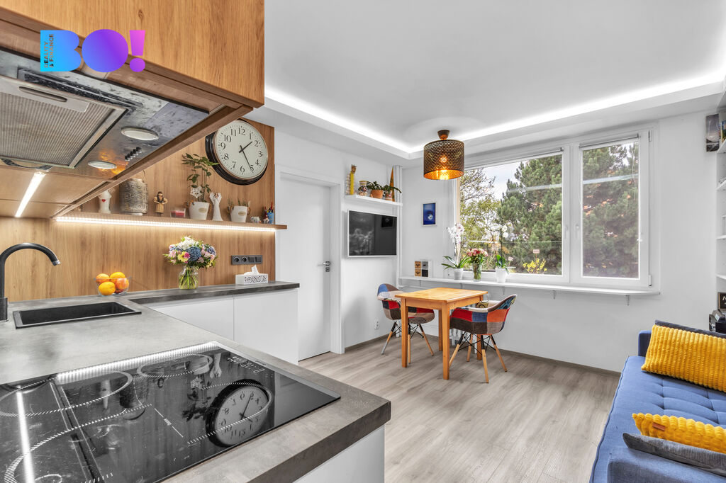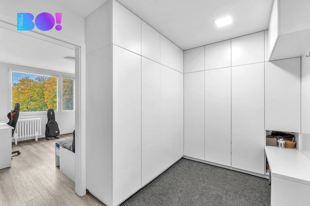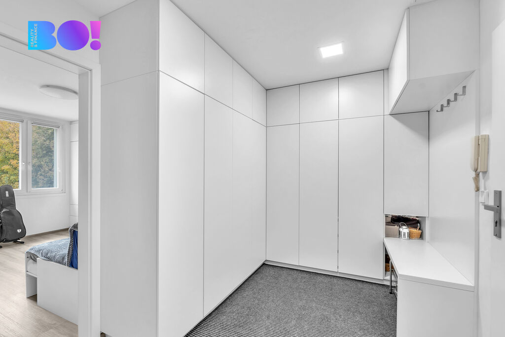 Byt prošel kompletní rekonstrukcí, která byla navržena bytovým architektem s důrazem na maximální využití užitné plochy a úložných prostor. Z původní dispozice 2+1 byl upraven na současné 3+kk.