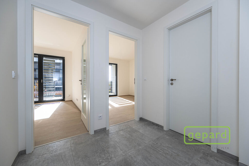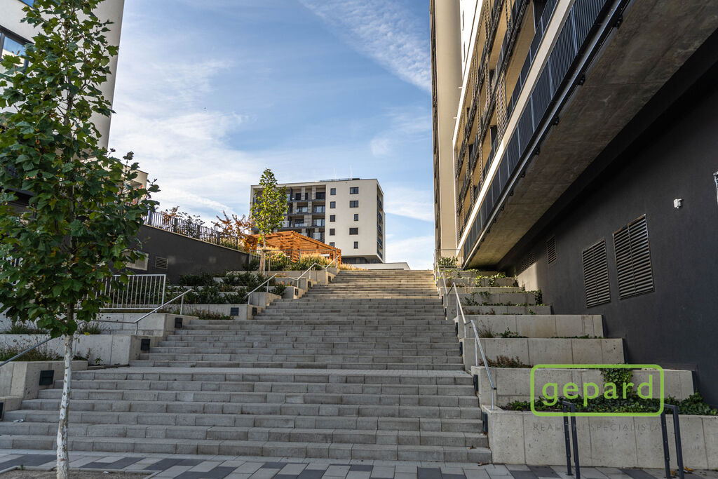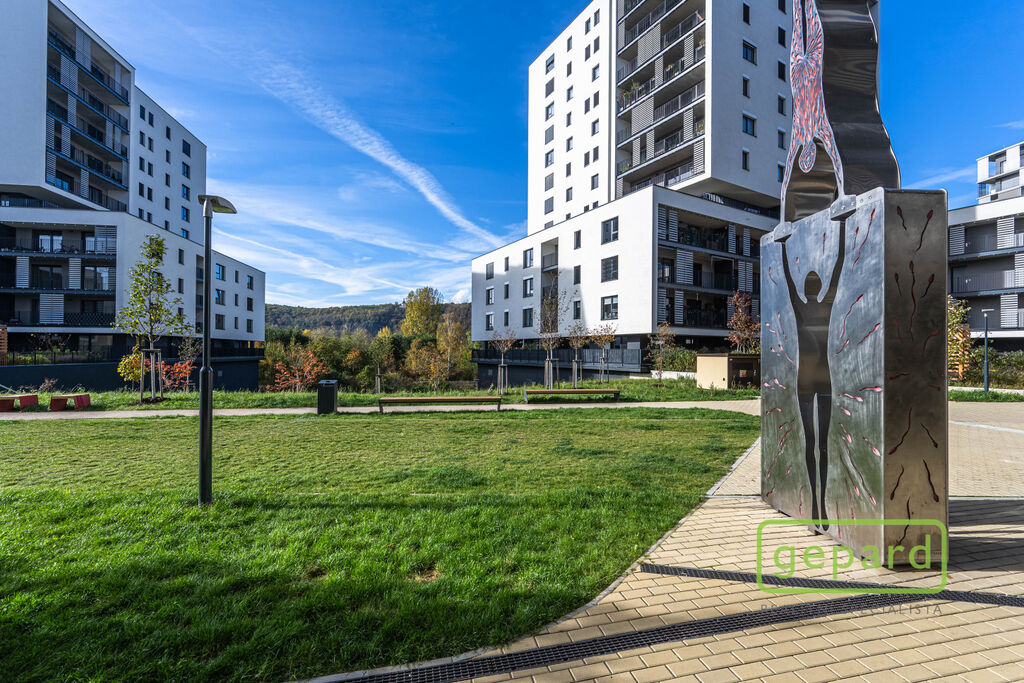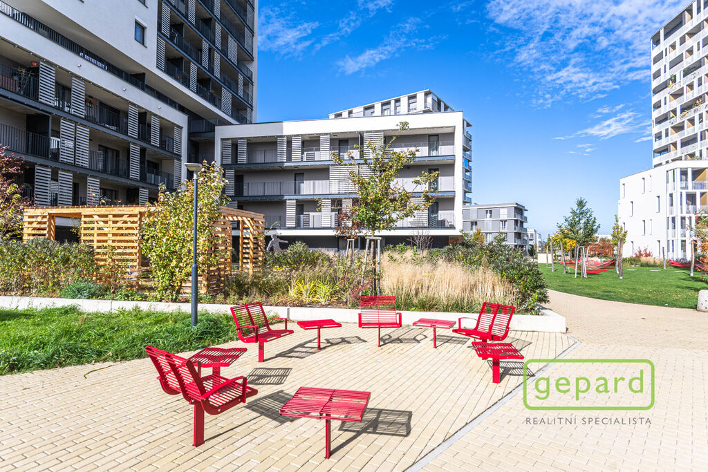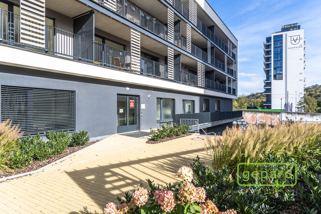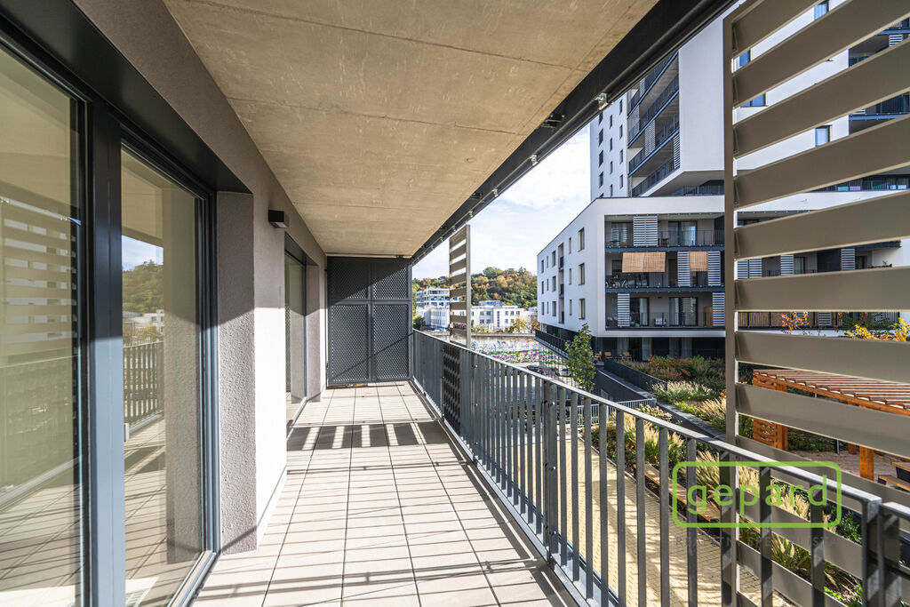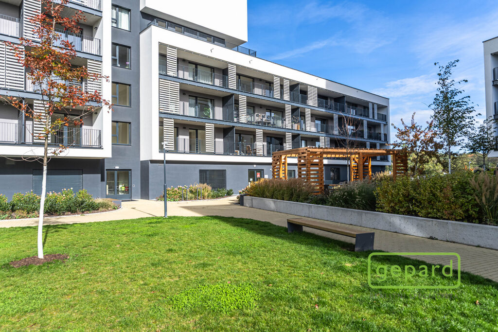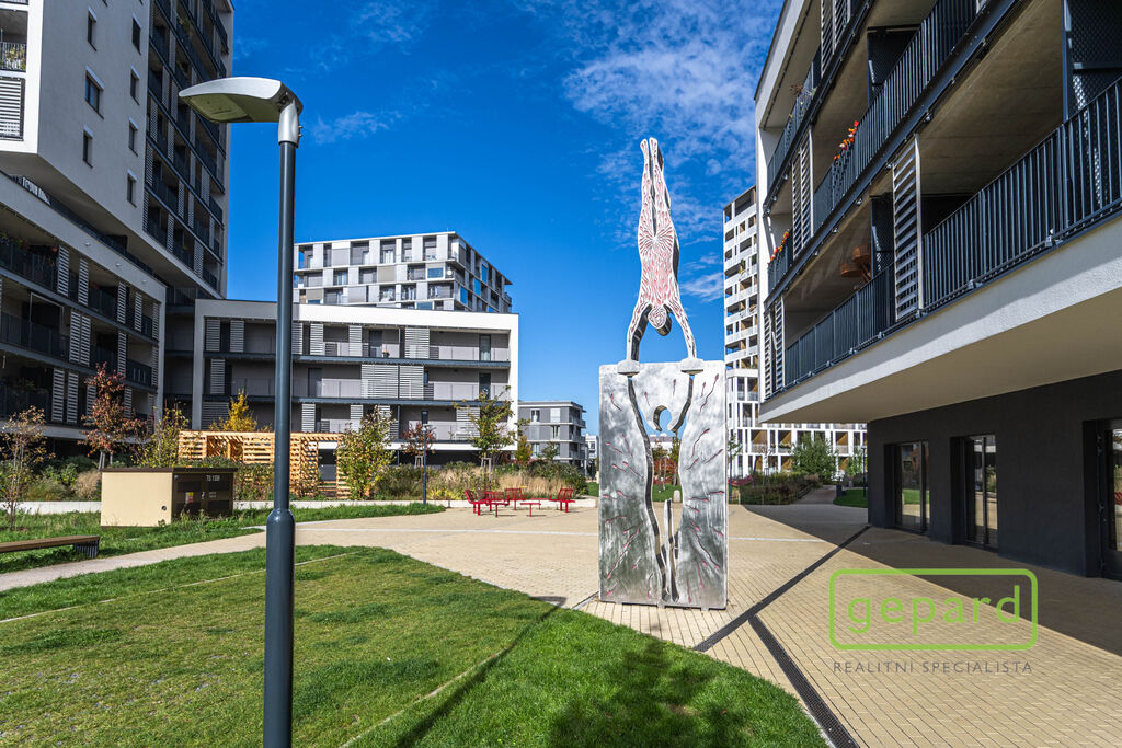 Realitní společnost Gepard nabízí exkluzivně k dlouhodobému pronájmu bytovou jednotku 2+kk v novostavbě, v ulici Mezi Vodami, Praha 4 - Modřany. podlahová plocha bytu je 52,8 m2, + prostorný balkon a sklep. Součástí pronájmu je garážové stání, umístěné v suterénu domu. Byt se nachází ve 2.NP (1. patro) moderního bytového domu, který je součástí rezidenčního projektu Zahálka. Je zde předsíň (5,7 m2), koupelna s WC (4,6 m2), ložnice (16,1 m2), obývací pokoj s kuchyňským koutem (23,1 m2). K dispozici je kuchyňská linka vybavená velkou lednicí s mrazákem, myčkou, mikrovlnnou troubou, horkovzdušnou troubou se sklokeramickou varnou deskou a digestoří, v koupelně je k dispozici pračka. Prostorný balkon je přístupný z obývacího pokoje i z ložnice. Byt je vytápěn centrálně pomocí rekuperace. Nájemné 26 000,00 Kč měsíčně + zálohy na služby 4 000,00 Kč + záloha na elektřinu (přepisuje se na nájemníka). Kauce je ve výši 35 000,00 Kč. Na začátku pronájmu hradí nájemce vratnou kauci, první nájemné včetně záloh na služby a provizi RK ve výši 13.000,- Kč. Součástí komplexu je fitness, kavárna, restaurace a obchod Tesco. V těsné blízkosti je golfové hřiště, tenisové kurty, povltavská cyklostezka, místo nabízí možnost procházek podél řeky Vltavy. Tramvajové spojení do centra trvá asi 15 minut.