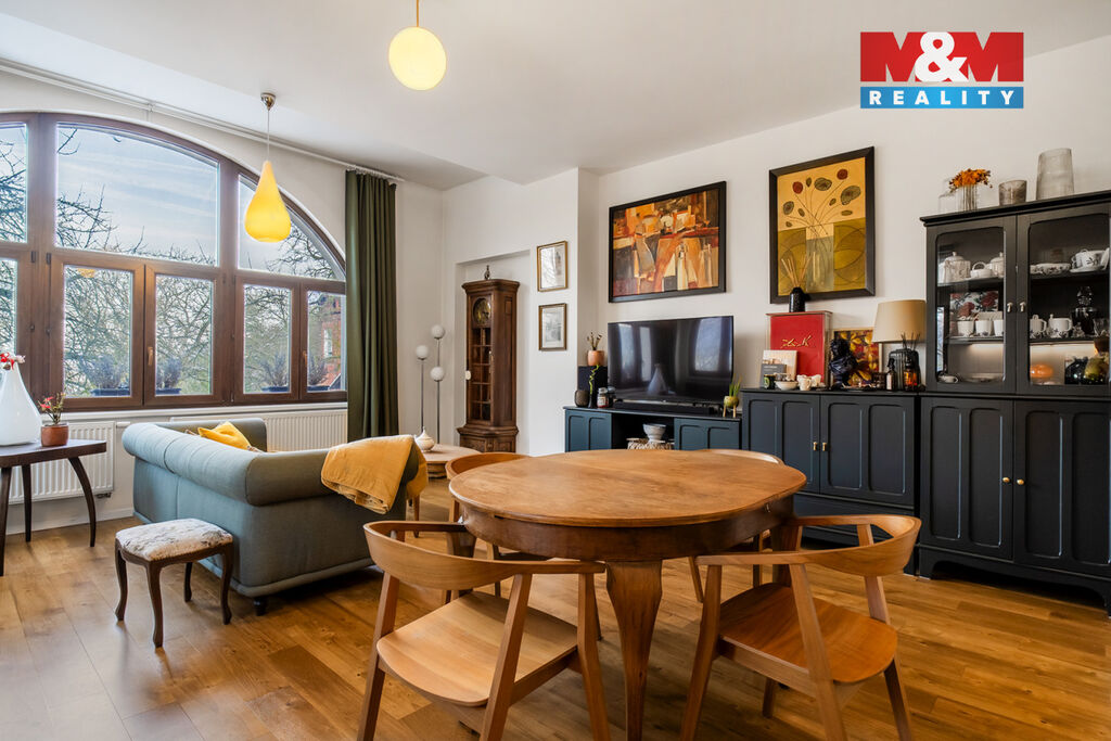 Nabízíme k prodeji luxusní byt 3+kk o užitné ploše 100 m², situovaný v klidné vilové části. Tento exkluzivní byt se nachází ve zrekonstruované vile, která nabízí nejen moderní bydlení, ale i klidné prostředí a soukromí. Byt je umístěn v 1. nadzemním podlaží a je navržen s důrazem na komfort a styl. Interiér je luxusně zařízený a veškerý nábytek je laděn do sjednoceného designu. Byt je vytápěn plynovým kotlem, což zajišťuje příjemnou teplotu po celý rok. K bytu náleží také zahrada, specifikovaný podíl ideální pro vlastní relaxaci a dále soukromé parkovací místo. Pokud hledáte bydlení, které spojuje klidné prostředí s moderními prvky a komfortem, tento byt je pro vás ideální volbou. Neváhejte a domluvte si prohlídku ještě dnes!