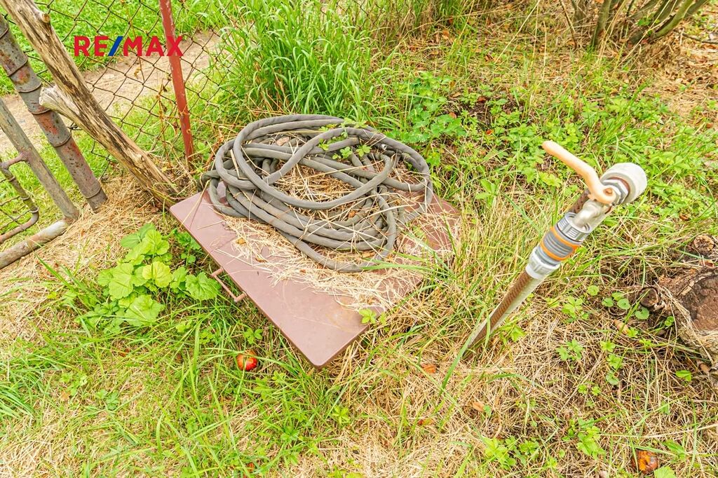 Na zahradě se nachází montovaná zahradní chata, skandinávské suché WC a je zde k dispozici sezónní voda. Pozemek je obklopen množstvím zeleně a ovocných stromů, které vytvářejí jedinečnou atmosféru – opravdovou oázu klidu a pohody.