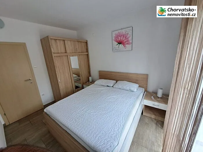 Třípokojový apartmán o celkové ploše 70m2 je na prodej v prvním patře apartmánového domu v klidné ulici v Novalji.