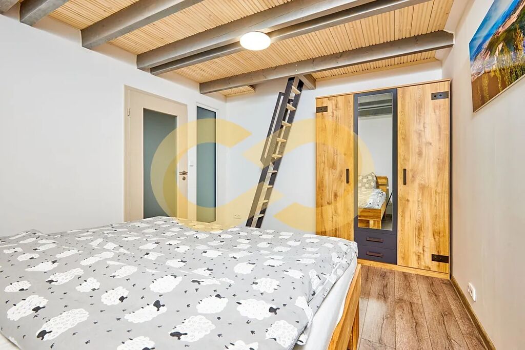 Pokud zvažujete jak spojit příjemné s užitečným, můžete byt pronajímat. Je kompletně zařízený, takže si nemusíte dělat starosti s vybavováním – stačí založit profil na rezervačním portálu. O turisty mířící na Šumavu tu nebudete mít nouzi.