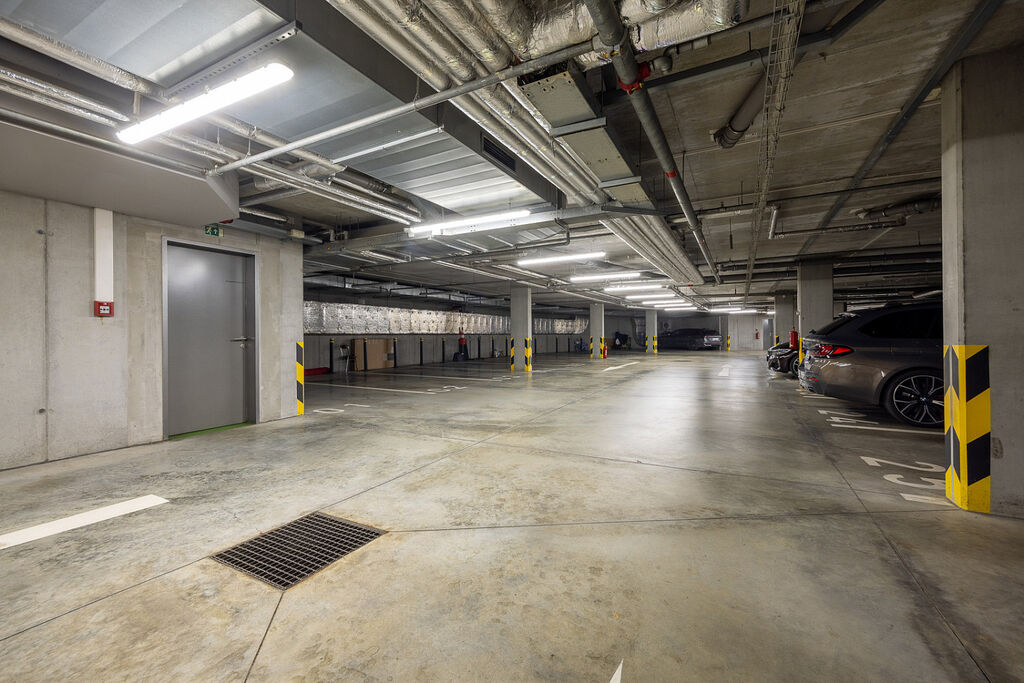 K bytu náleží zděná sklepní kóje a soukromé parkovací stání v podzemní garáži, odkud lze do bytu projít suchou nohou.
