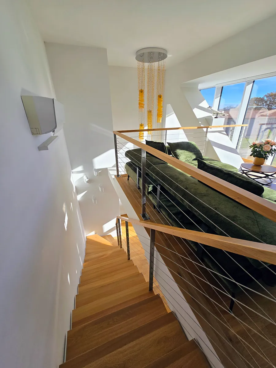 Exkluzivně nabízíme nádherný atypicky mezonetový byt o velikosti 143m2 s velkou terasou 35m2 který poskytuje úchvatné výhledy na panorama Prahy a je součástí exkluzivního projektu SACRE COEUR 2 v atraktivní klidné lokalitĕ Smíchova v bezprostřední blízkosti dvou parkú.V prvním patře bytu se nachází velký obývací prpstor s kuchyní, vstupem na velkou terasu a také je zde koupelna s toaletou.Do druhého patra bytu se dostanete dubovým schodištĕm a zde je pokoj formou galerie, kde se nachází rozkládací sofa, LED televize s velkou úhlopříčkou a tímto tvoří velmi dobrou odpočinkovou zónu.Dále se polračuje chodbou do ložnice, která má velkou samostatnou šatnu a je zde také vstup do koupelny s velkou vanou.Byt je vybavený luxusní kuchyňskou linkou s vestavĕnými spotřebiči AEG ( horkovzdušná trouba, indukční deska, mikrovlnná trouba, myčka nádobí atd). Dále vybaveno kompletnĕ nábytkem, velkou TV, pračkou, sušičkou, klimatizací, zahradním nábytkem včetnĕ vířivky.Podlahová krytina parkety a velkoformátové dlažby.Velmi luxusní zpracování a nadstandardní zřizovací předmĕty vysoké kvality.V rámci domu je recepce 24/7 a lobby.K bytu patří parkovací stání a sklep.
