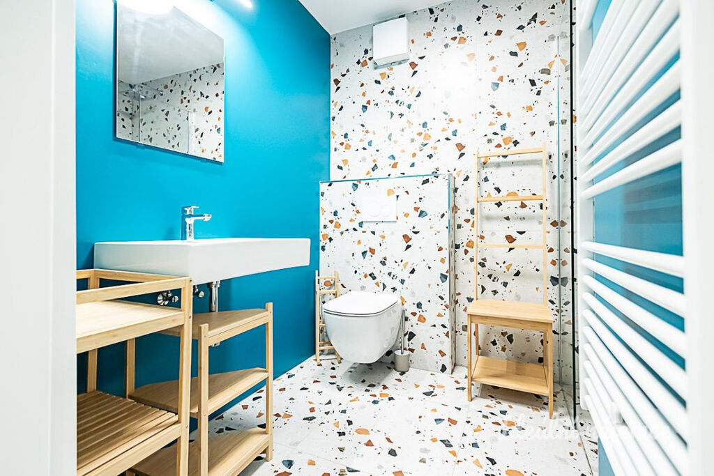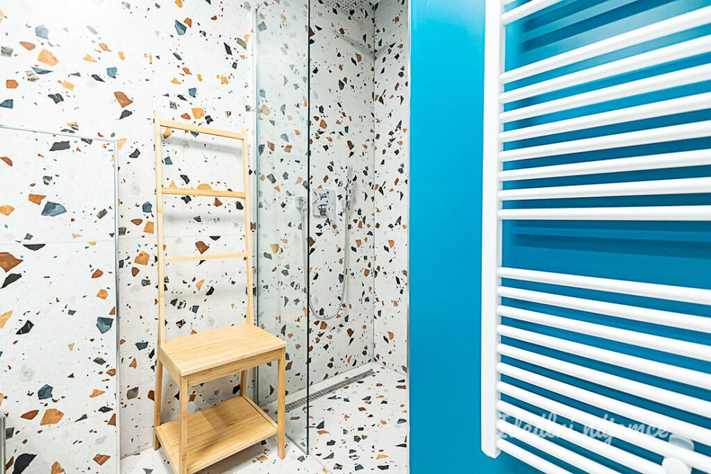 Byt je částečně vybavený, což dává novému nájemníkovi možnost doladit interiér podle vlastního vkusu. Kuchyňský kout je vybaven elektrickou a mikrovlnnou troubou, indukční varnou deskou, lednicí, digestoří, myčkou a posezením. Obytná část nabízí pohodlný gauč, konferenční stolek, přímý vstup na balkon a úložné prostory. Koupelna je zařízena sprchovým koutem, umyvadlem a toaletou. V bytě se také nachází komora s pračkou.
