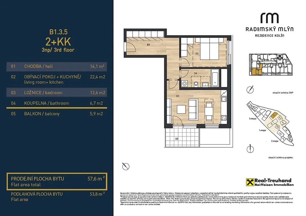 Nabízíme Vám ke koupi byt 2kk s balkonem v unikátním projektu Radimský mlýn v Kolíně. Byt je orientován na jih a má jedinečný výhled na historické centrum města a řeku Labe.