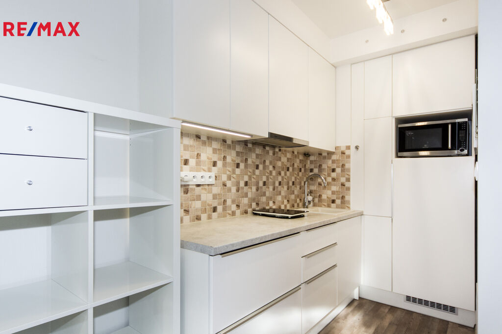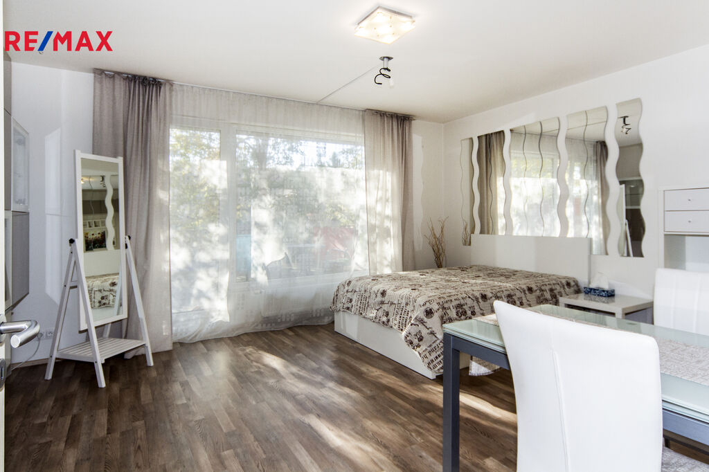 K pronájmu nabízíme příjemný byt o velikosti 34 m2 s velkou terasou (23 m2) ve druhém podlaží novostavby v Letňanech. Byt se pronajímá zařízený dle fotografií. V kuchyni je k dispozici malá indukční ploténka na vaření, mikrovlnka s horkovzdušnou troubou, lednice. Koupelna se sprchovým koutem je společná s WC, nachází se zde i pračka. V předsíni stojí velká vestavěná skříň. Z pokoje je možné vstoupit na prostornou terasu orientovanou na jihovýchod.