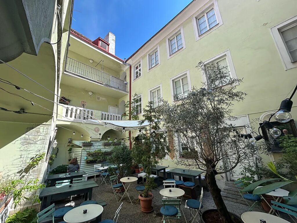 Jedná se o rohový bytový dům s nebytovými prostory v 1.NP a 1.PP, bytové jednotky ve 2.NP, 3.NP a v části podkroví. V 1.NP kavárna a zázemí (sklady, přípravna, WC). Ve vnitrobloku útulné posezení a krásný prostor.