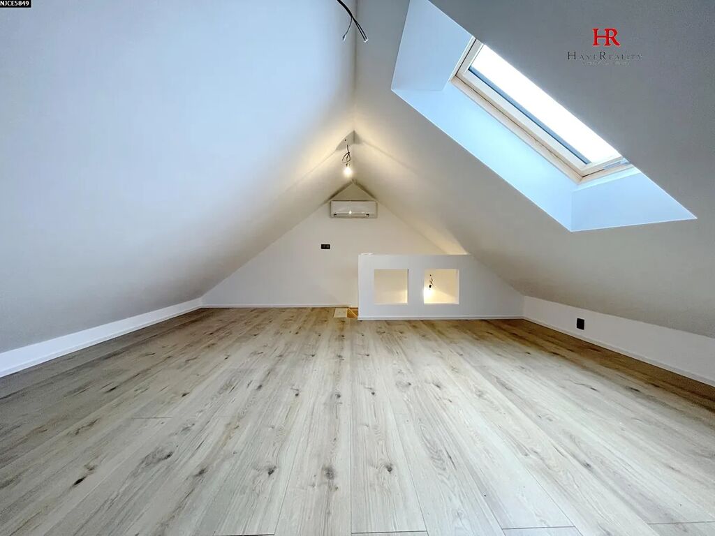 Nabízíme ke koupi byt o dispozici 5kk se zahradou, terasou a parkovacím stáním v žádané lokalitě, Chrást nad Sázavou, část obce Týnec nad Sázavou, okr. Benešov. Byt se nachází v řadovém domě (viz plánek – RD6) se samostatným číslem popisným, postaveném na obdélníkovém pozemku o celkové výměře 134 m2. Zastavěná plocha domem cca 65 m2. Užitná plocha domu cca 110 m2, zahrada za domem cca 42 m2 (z toho dlážděná terasa cca 12 m2), dále pozemek se dvěma parkovacími stáními před domem. Vlastnictví osobní. Řadový dům, ve kterém se byt nachází je patrový a není podsklepený. Příjezdová komunikace – dlážděná (obecní). IS – obecní vodovod, elektřina 230 V/400 V (25 A), spádová kanalizace, optický, telekomunikační kabel - internet. Topení – podlahové vytápění, tepelné čerpadlo vzduch - voda, v podkrovní místnosti je tepelné čerpadlo vzduch - vzduch sloužící k topení i jako klimatizace. Ohřev vody je zajištěn dvěma bojlery (pro každé patro samostatně). Podlahy – dlažba, plovoucí podlaha (lamino). Interiérové dveře s obložkou. Okna – plastová (trojsklo), střešní okna dřevěná (trojsklo), v koupelně střešní okno plastové. Střecha – sedlová, střešní krytina plechová, zateplená (25 cm vata + PUR pěna). Schodiště do patra – beton, povrchová úprava dřevo, schodiště do podkrovní místnosti dřevěné. Dům je dvoupodlažní + podkrovní místnost. Obvodové zdivo Ytong 25 cm + zateplení šedým polystyrenem 14 cm. Dispozice bytu (řadového domu) 5kk. Přízemí – předsíň 5,4 m2, obývací pokoj s kuchyňským koutem 20,8 m2, technická místnost 6,8 m2, wc s umyvadlem 1,4 m2. 1. patro – hala 7,1 m2, schodiště 3,1 m2, ložnice 10,9 m2, pokoj I. 10,0 m2, pokoj II. 14,1 m2, koupelna s wc 8,1 m2. Podkrovní místnost 28 m2. V bytě jsou vyhotoveny rozvody TV, internetového signálu, v každé místnosti termostat na řízení teploty. Na pozemku před domem (tedy u vstupu) se nachází vydlážděný, částečně zastřešený prostor s možností parkování 2 automobilů. Na oplocené zahradě se nachází terasa a travní plocha, dále pak podzemní nádrž na dešťovou vodu (5 m3). Jedná se o velice hezké, klidné místo v blízkosti přírody a řeky Sázavy. Nedaleko bytu naleznete tenisové kurty, restauraci, prodejnu potravin, MŠ, poštu. ZŠ se nachází v Krhanicích vzdálených 1,5 km. Veškerá občanská vybavenost v 5 km vzdáleném Týnci nad Sázavou. Dobré spojení do Prahy, zastávka bus – PID, nebo vlak (vlaková zastávka Krhanice). Vzdálenost do Benešova je cca 10 km a do Prahy cca 30 km. PENB – třída B – velmi úsporná. Nemovitost je již zkolaudována, k nastěhování ihned. Nemovitost se prodává bez vybavení nábytkem. Ve fotodokumentaci u nabídky jsou použity i vizualizační fotky. Možnost odpočtu DPH, možnost koupě zděné garáže (25 m2) nacházející se v blízkosti bytu. V případě zájmu Vám zprostředkujeme sjednání hypotéky.