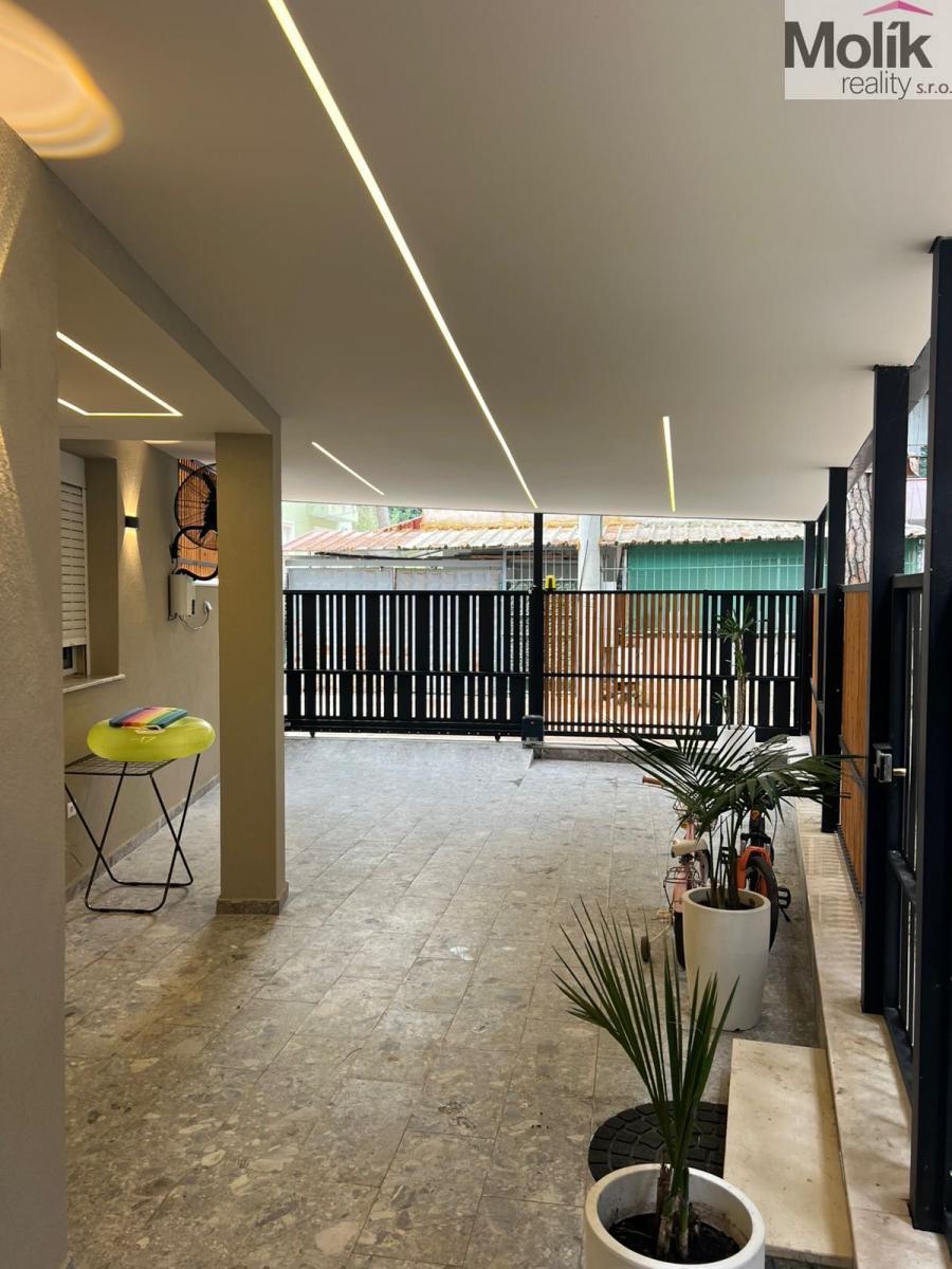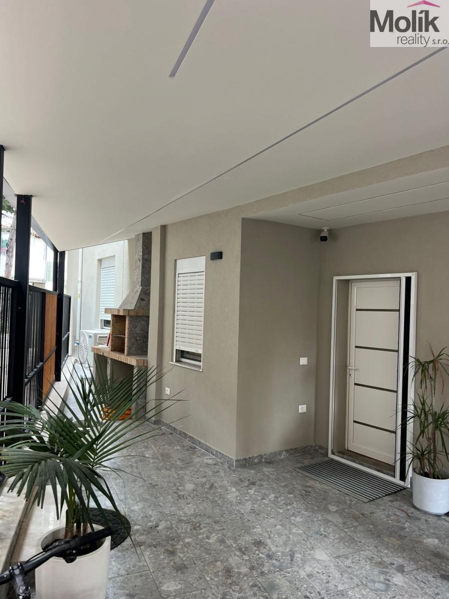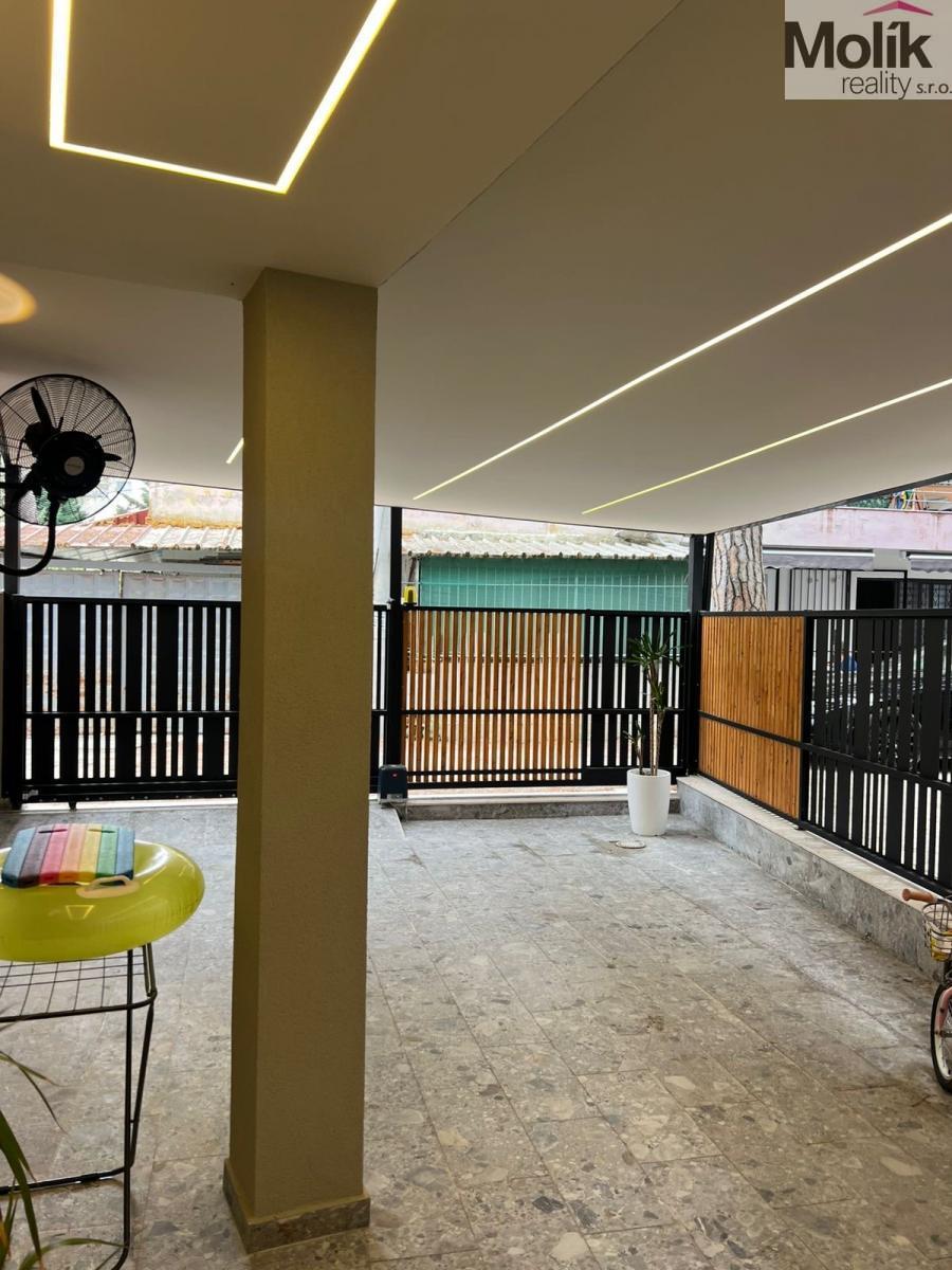 Exteriér / veranda: prostorná terasa s venkovním grilem a pracovní plochou z kamene ideální pro letní večery. Součástí je i připojení na vodu a dostatek úložného prostoru.