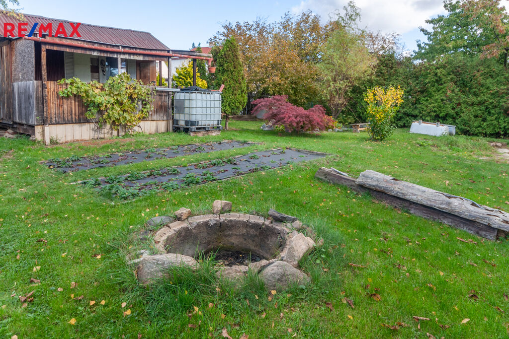 Součástí pozemku je zahradní domek se zastavěnou plochou 39m2 , dále je k dispozici přípojka elektřiny a vody. Příjezd k pozemku je po travnaté cestě ve vlastnictví města, parkování možné přímo na zahradě nebo před ní.