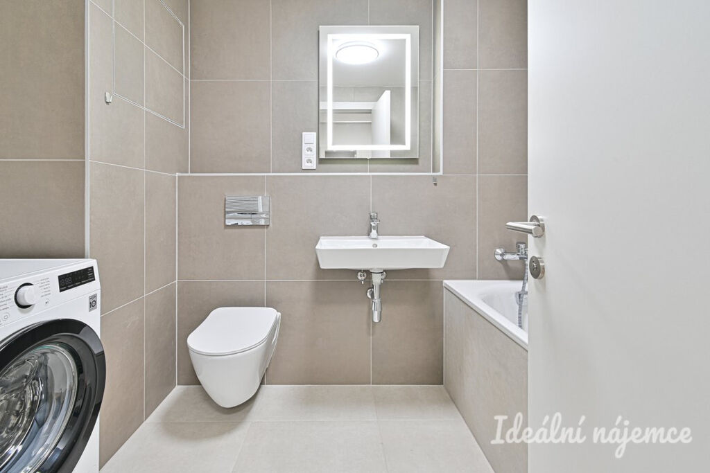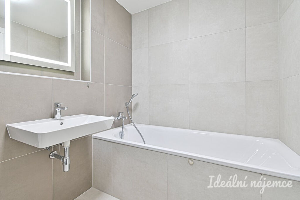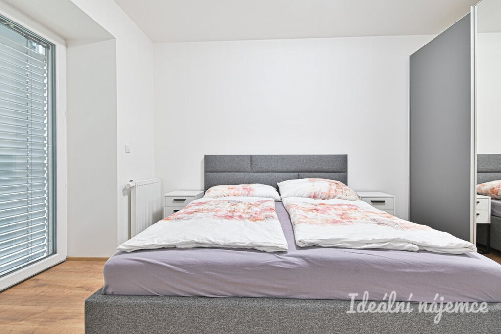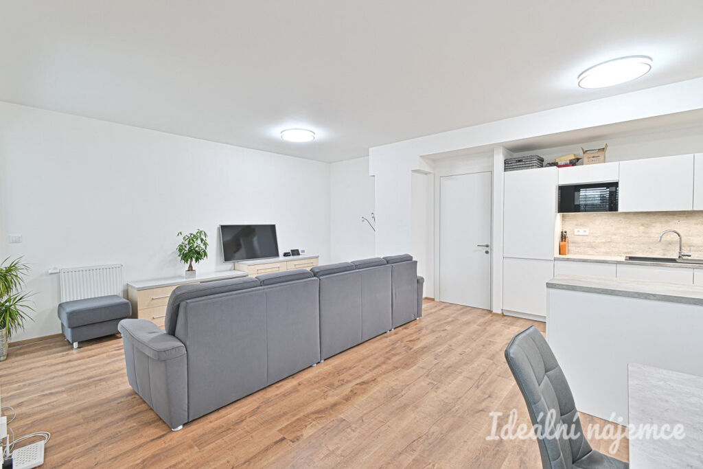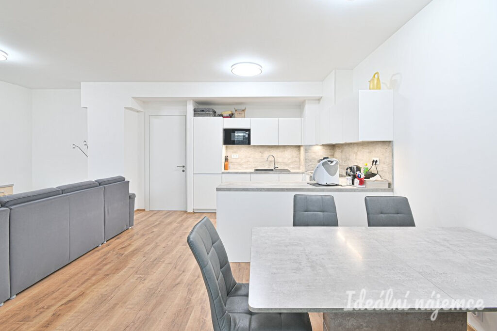 Byt se nabízí vybavený dle fotografií. Moderní kvalitní kuchyně disponuje lednicí, myčkou, elektrickou troubou, varnou deskou, mikrovlnnou troubou a digestoří, zbytek místnosti je dovybaven jídelním stolem včetně židlí, sedací soupravou a TV stolkem. Ložnice je vybavena skříní na míru a kvalitní manželskou postelí. V koupelně je vana, umyvadlo se skříňkou a žebříkový radiátor. Toaleta je oddělena. Ve vstupní chodbě je zabudována prostorná vestavná skříň s dostatkem úložného prostoru. Velkou výhodou bytu je ještě jedna menší oddělená místnost, kterou lze využít jako šatnu, pracovnu nebo menší dětský pokoj.