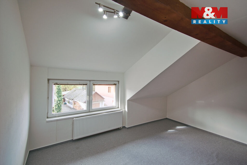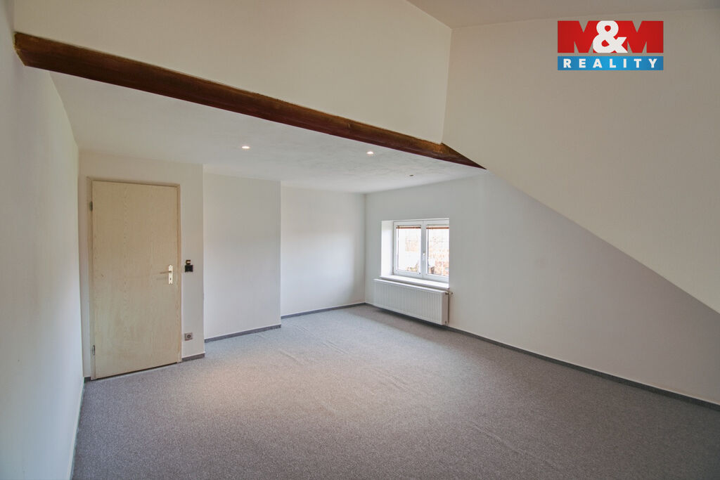 Nabízíme k prodeji rodinný dům, který je situován v okrajové časti obce. V 1.NP se nachází veranda, chodba se schodištěm do 2.NP, kuchyň, prostorný obývací pokoj, koupelna a WC. V 2.NP se nacházejí tři samostatné pokoje, menší kuchyňský kout, koupelna a WC. V 1.PP je kotelna a sklad paliva. Dům je vytápěn kotlem na tuhá paliva, je připojen k veřejnému vodovodu a kanalizaci. Nabízí se i možnost připojení k plynové přípojce. Součástí je i neoplocená zahrada s malým jezírkem a altánem. V obci je veškerá občanská vybavenost. Doporučujeme prohlídku.
