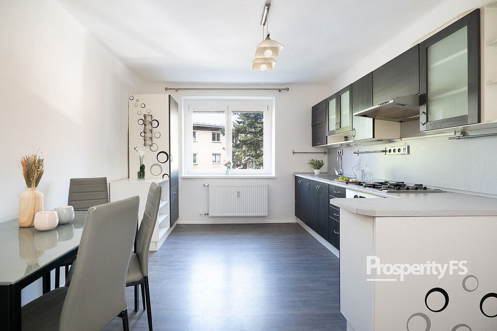 ️ Částečně vybavený – kuchyňská linka se spotřebiči, stůl a židle, skříňky v kuchyni i na chodbě, lednice (viz foto)