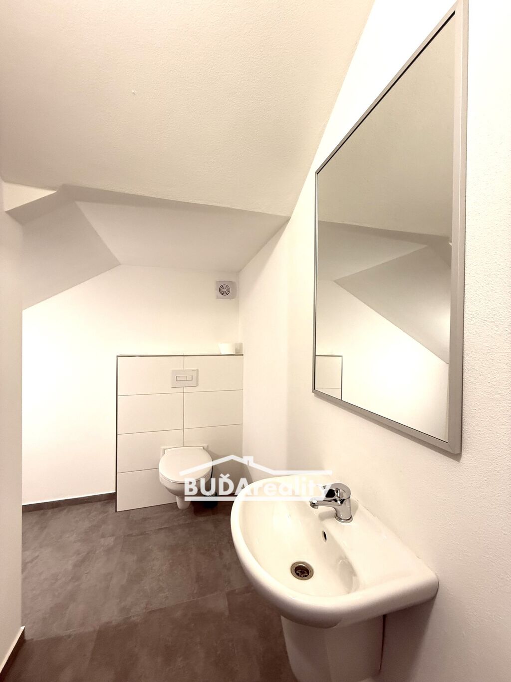 Kancelář o ploše 12 m2 se nachází v přízemí ve vstupní části bytového domu. Náleží k ní technická místnost o výměře 6 m2, kde je k dispozici umyvadlo, toaleta a místo pro skladování.