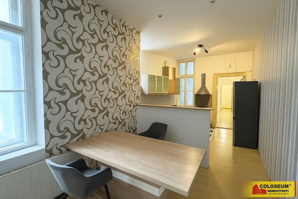 Nabízíme k pronájmu výjimečně prostorný byt o dispozici 3+1 a celkové přibližné vnitřní ploše 103,9 m², umístěný ve 3. patře domu v samém centru Brna.