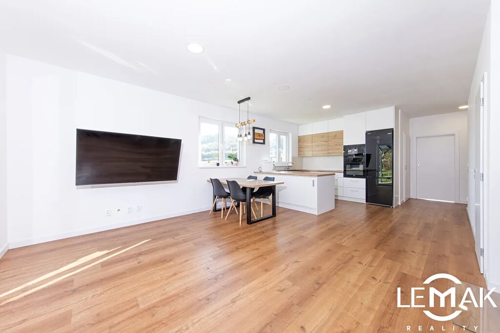 Interiér je laděn do teplých, příjemných tónů. Podlahy tvoří kvalitní vinyl s křemičitým jádrem, který má výborné vlastnosti pro podlahové vytápění.