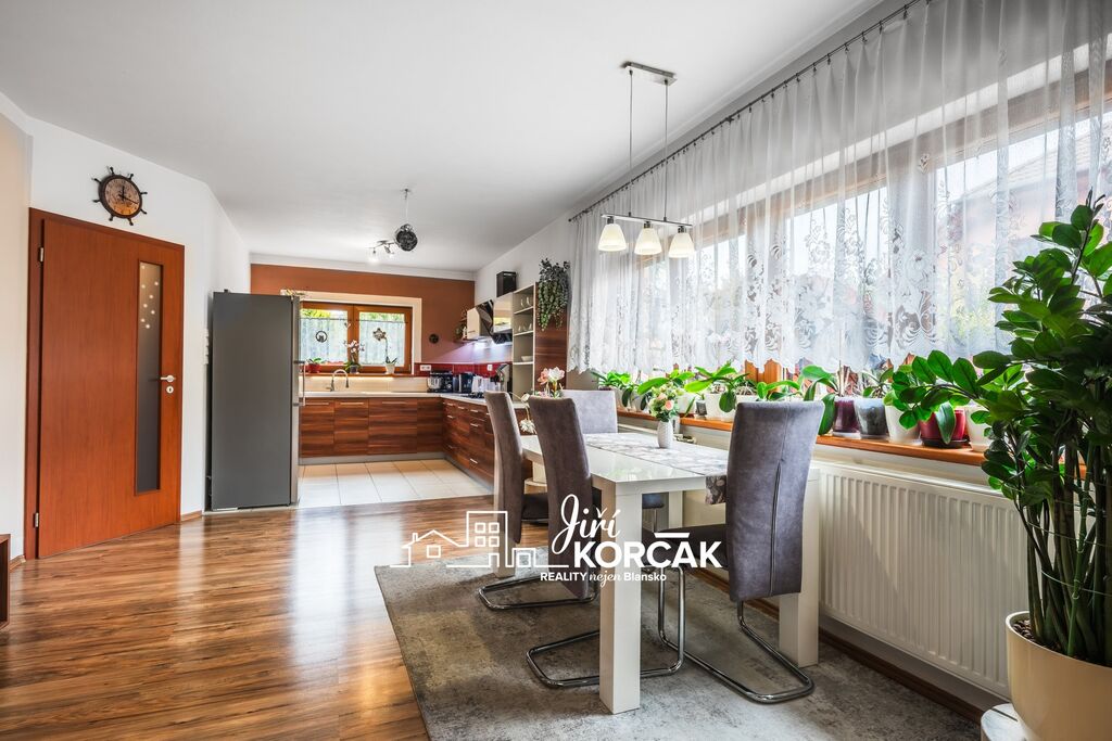 V klidné části obce Heršpice u Slavkova, ve slepé ulici s minimálním provozem, najdete moderní a zároveň útulný rodinný dům s dispozicí 5+1, garáží, dílnou a krásnou zahradou.